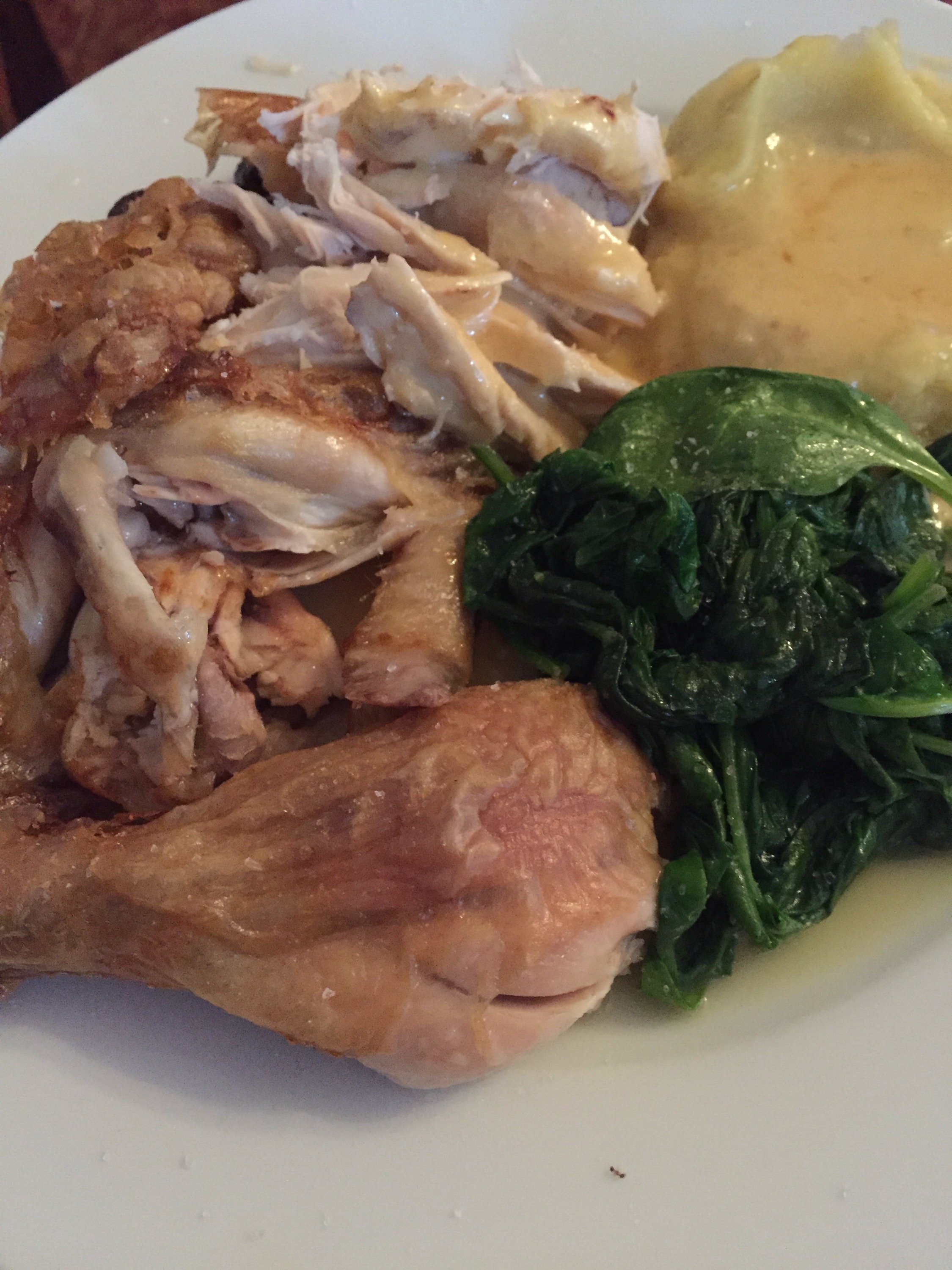 I roasted a fat woollies chicken, rubbing tons of olive oil into the skin and packing mushrooms round the chicken to cook in the drippings from the chicken, turning sticky from the chicken fat. After half an hour I slathered the skin with butter and put a bit of butter inside the bird. The skin went so light and crispy. I made puréed sweet potato and I stir fried spinach to go with it. I put the chicken on the cutting board and dished up the mushrooms and then I made the most amazing gravy in the roasting pan on the stove. I melted a bit more butter sprinkled almond flour over the pan and made a roux then added a container of double thick cream and blended. It was like Christmas gravy.
