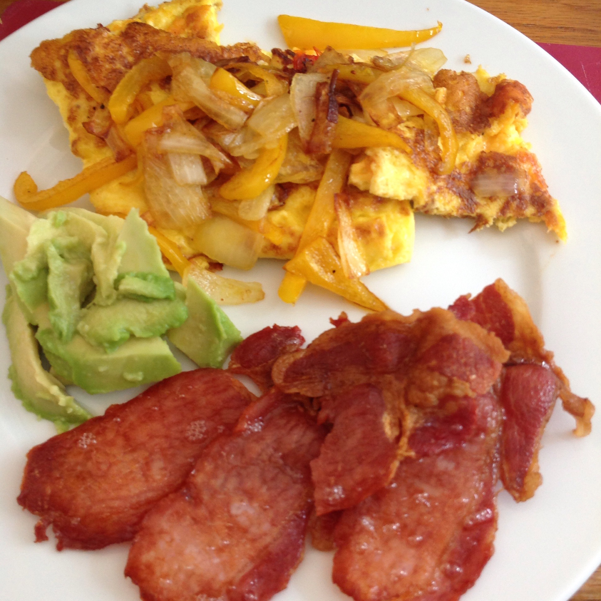 I did a cheese and tomato omelette with avocado and crispy bacon. For Norm and I there were fried onion and pepper, I didn’t add to the omelette as Lily is not a fan.