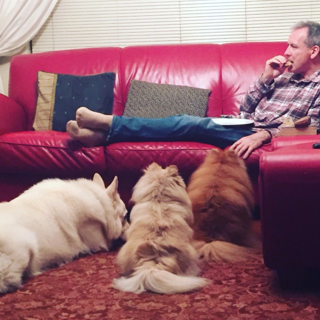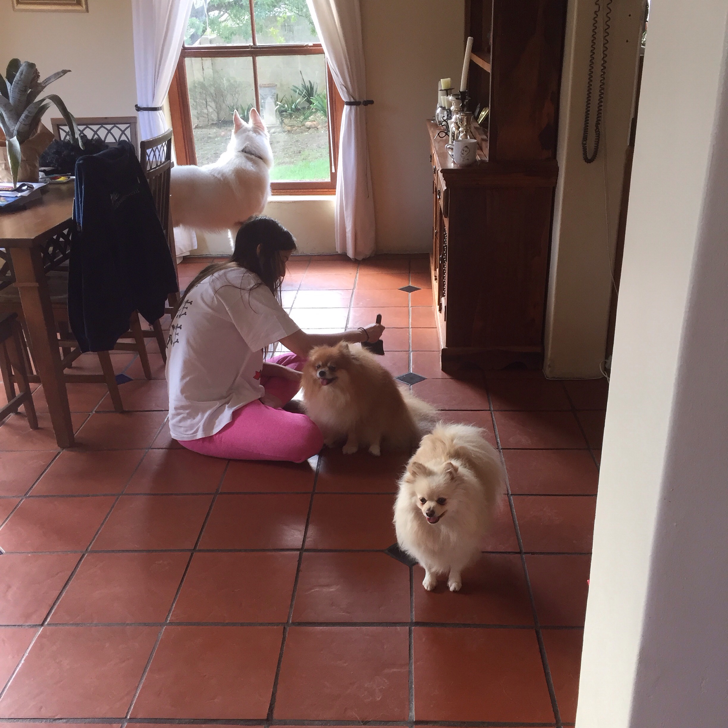 Lily did a bit of Grooming to the pups on Saturday. Navajo kept his eye on the gardener.