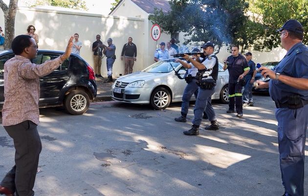 Photos were seen of Vice Chancellor Dr. Sizwe Mabizela asking police to stop their actions against the protesters‚ and yet police continue to shoot rubber bullets at protesters.