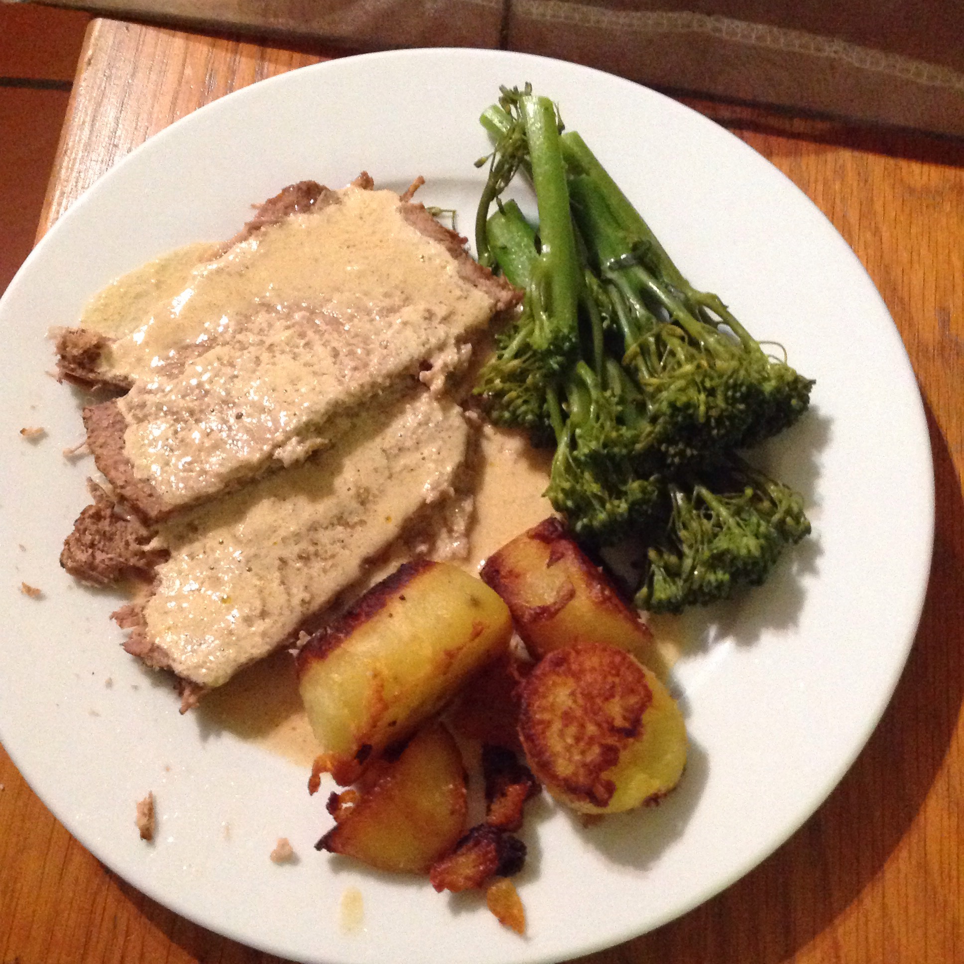 We continued our Sunday tradition last weekend and I made a gorgeous roast beef for dinner. I cooked it American style as a pot roast rather than baking it. I cooked it in broth, onions and garlic. Once cooked I strained the sauce and added cream to the rich broth. I made crispy, buttery fondant sweet potatoes and steamed long stem broccoli.