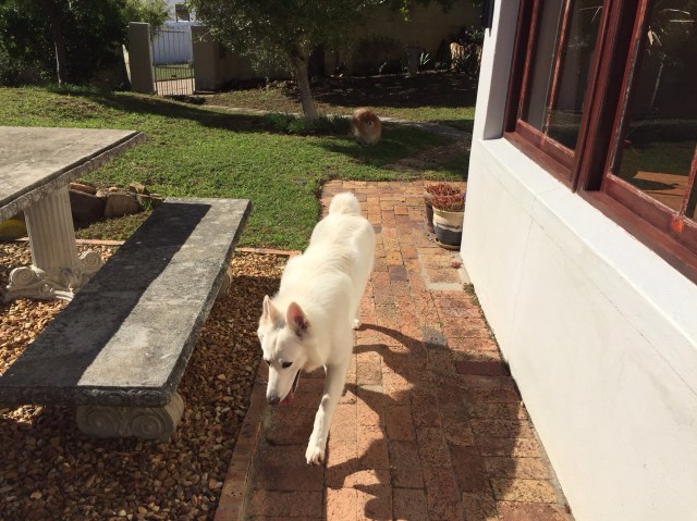 After I got home from work we were all having a wander round the garden and Norm was working on the pool, but we were not outside for long and when we came in we saw that cheeky Panda had jumped onto the couch he normally pretends to be too feeble to reach on his own. Then he had opened my bag and gotten into a zipped compartment and opened up a closed box to steal my sugar free gum and was subsequently whisked off to the vet. The vet made him vomit. He brought up tons of gum.