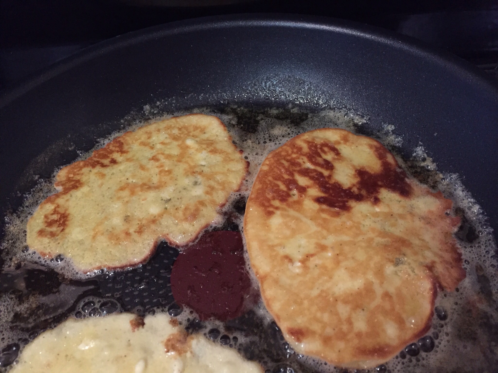Lily and I got up early and fed the dogs and took Norm a coffee in bed. We then attempted Cream Cheese Pancakes. My only adjustment was to use a tiny bit of local honey instead of xylitol.