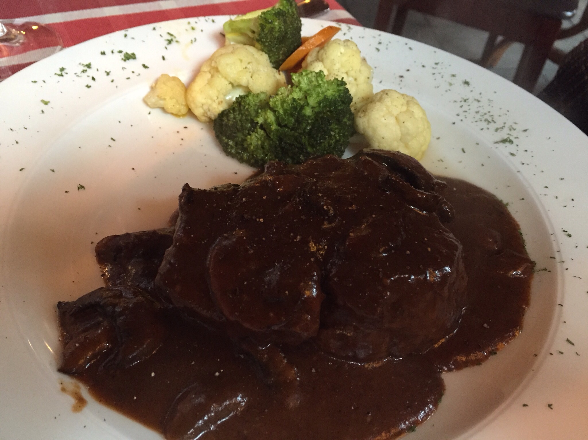My main was the 200gram fillet steak with mushroom sauce and vegetables as my side. Norm had the 300gram.