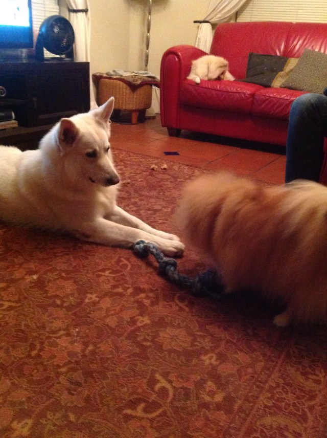 The dogs were happy we stayed in.