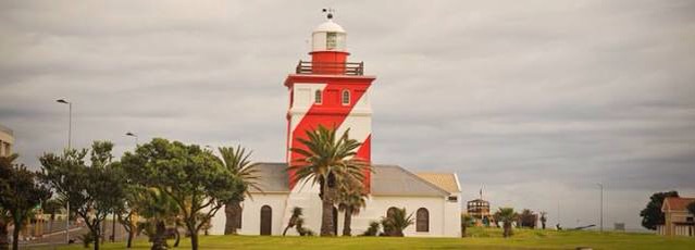 It is directly opposite the lighthouse.