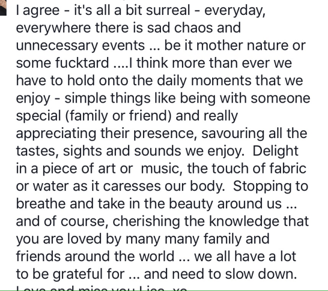 It made me feel a bit less panicked. It seems to be her role in this life as she has come to my rescue before. I think she and her sister Mandi and I have been soul sisters for centuries.