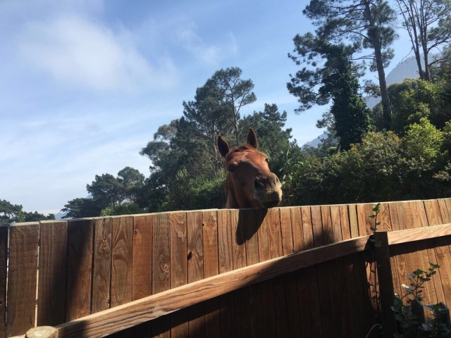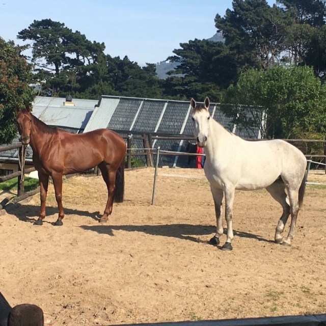 There are 2 stunning horses next door who trot about the paddock right in front of her cottage.
