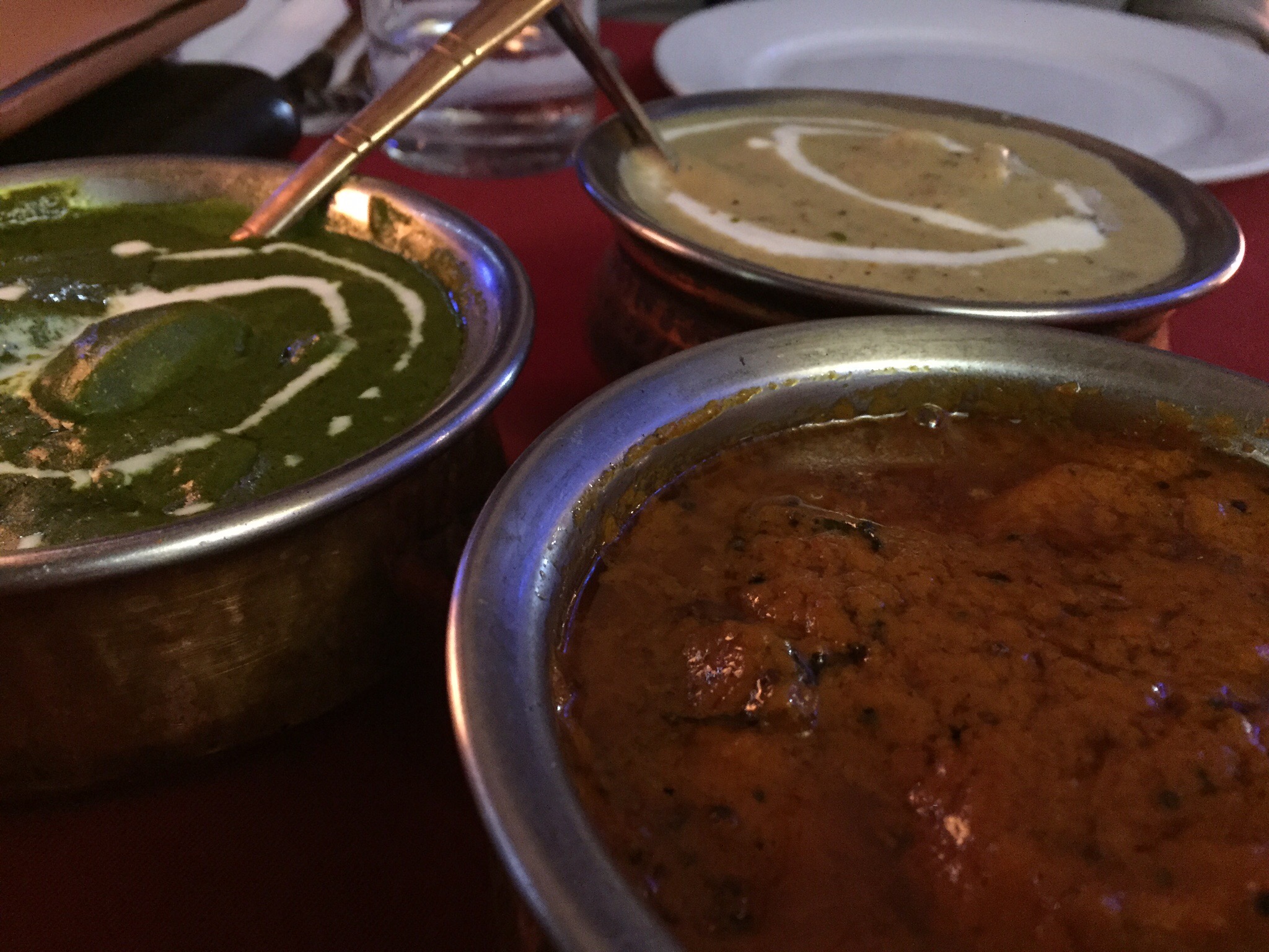 We shared the Panak paneer, spicy spinach in sauce with paneer cheese cubes. Norm had the chicken korma and I had prawn curry.