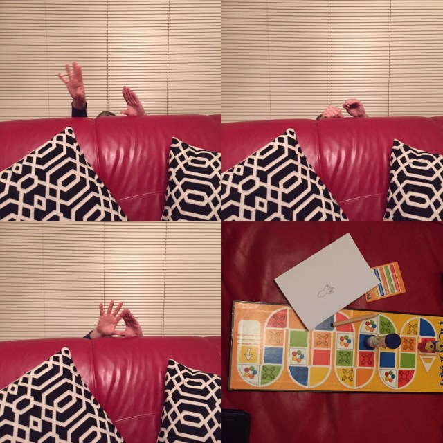 We played a few rounds of pictionary and then we played this crazy game where you each write down 10 words, then you have a variety of rounds. There is a round of 30 seconds, a round of pictionary, a round where you can only give a single word clue, one where you can only use facial expressions and not speak and one where you can only use hand puppets.
