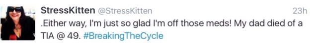 I told the GP that I didn’t take my meds that day and how ill I felt lately and that I suspect it is due to low BP from taking my meds. He said I must stop the meds and monitor my BP for 4 weeks. I’m so pleased. He told me the weight loss cured my high blood pressure. He just kept saying ‘you lost a quarter of your body weight!’ I’m so glad I didn’t end up walking the path of my Dad and dead of a stroke before 50 due to obesity. I’m breaking that cycle. I love food and to me it is my reward, my celebration, my way to show love. It’s got to be looked at differently, eat when hungry and not eat sugar. Simple one would think, right?