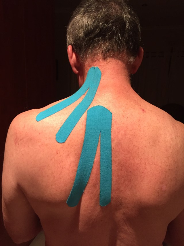 This week Norm finally went to the physio for his sore shoulder. I told him it is his neck, and indeed the physio clicked his neck, massaged his shoulder muscles, did a bit of acupuncture and then taped Norm up.
