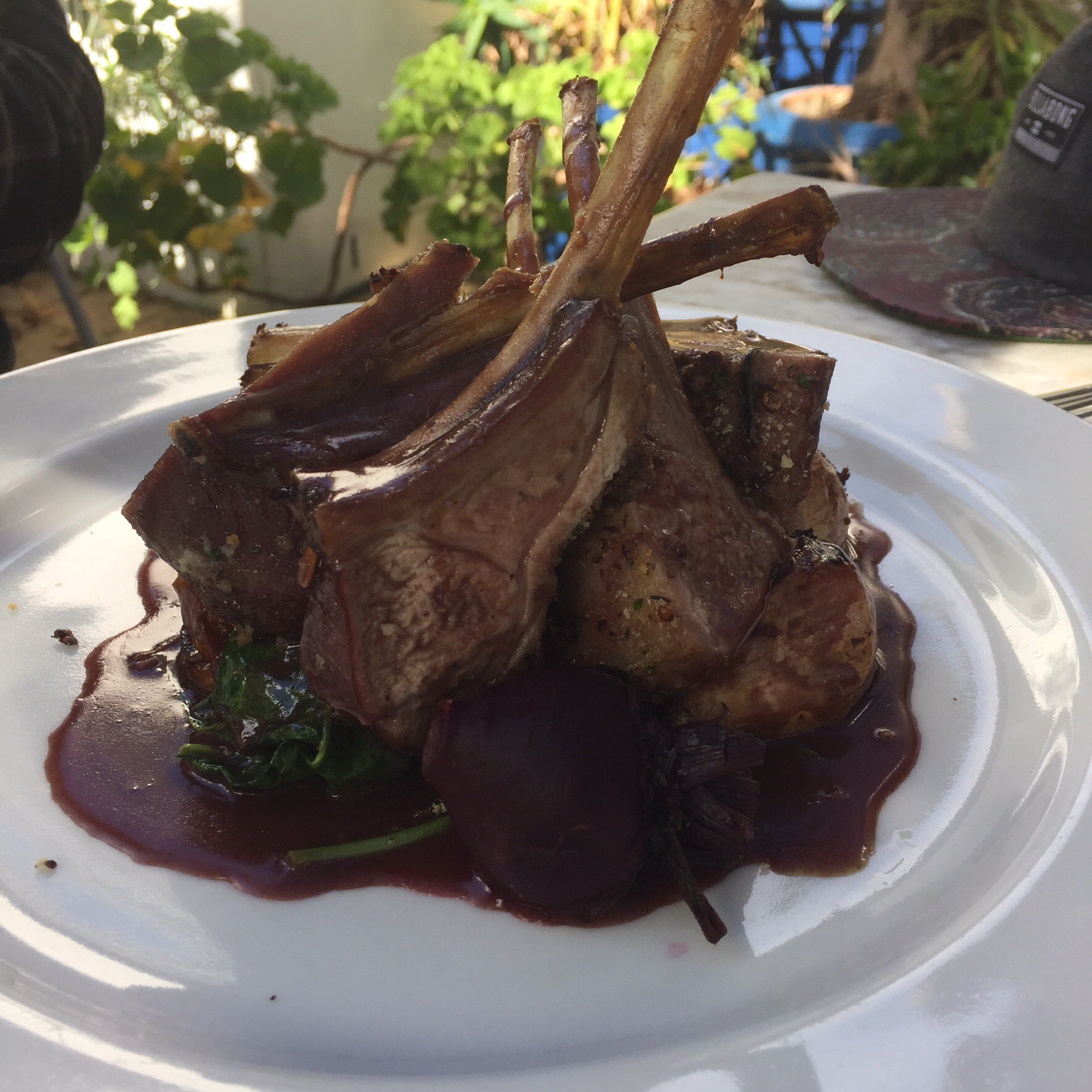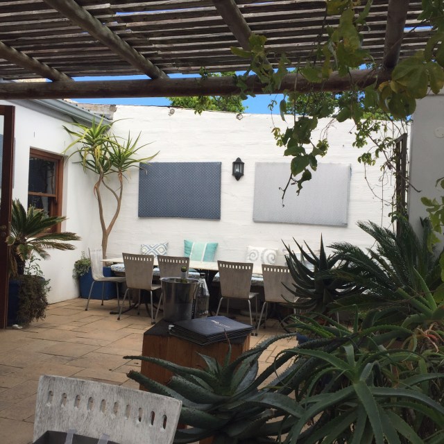 We were given the choice of inside the barn or out, as the patio is sheltered from the mad wind that was blowing, we chose the outside.