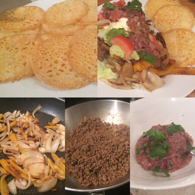 I made home made salsa with red onion, tomatoes and coriander. I made cheese tortillas and fried some yellow peppers and onions. I made mince with lots of spice and homemade guacamole. It was so yummy.