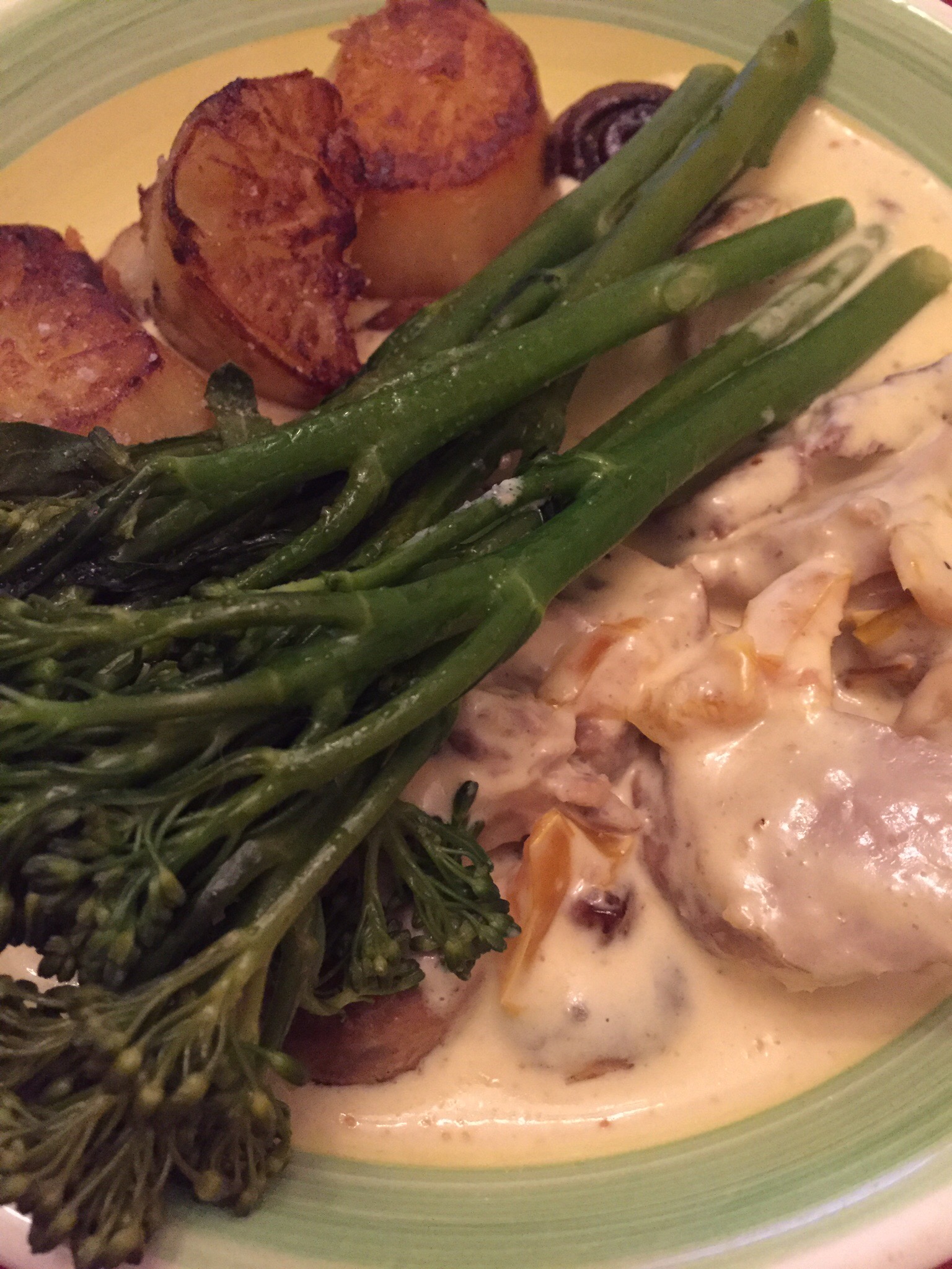 Norm cooked roast pork fillets for him and I on Tuesday as Cait still wasn’t eating. We only ate one of the fillets however so the following night I cut up the remaining fillet for our dinner then I cooked yellow peppers and sliced mushrooms then added the pork and cream. I made fondant sweet potatoes and steamed broccoli and fried mushrooms.