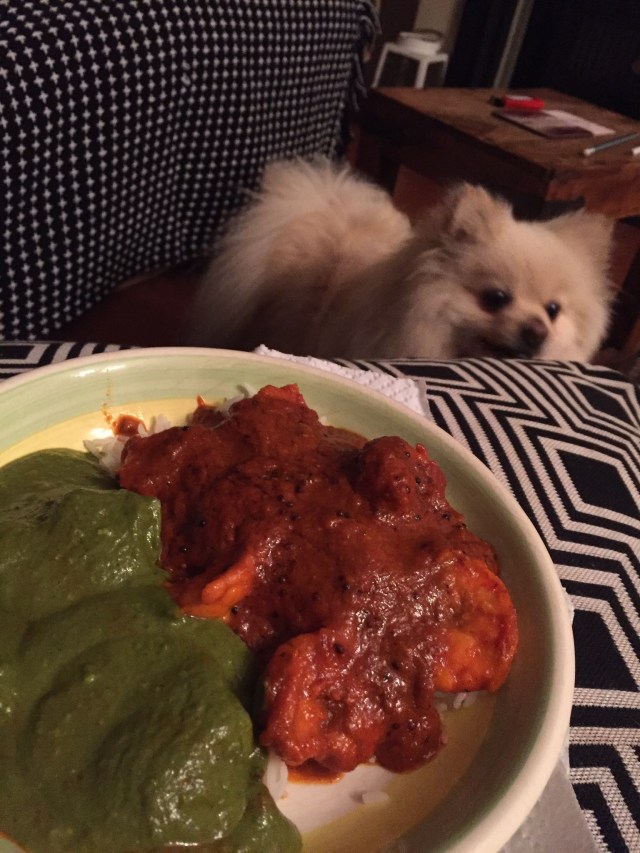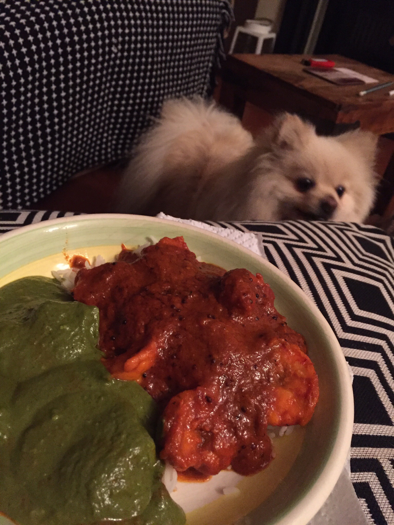 Friday night we had a takeaway Curry. I shared prawn curry with Cait and shared palak paneer with Norm.