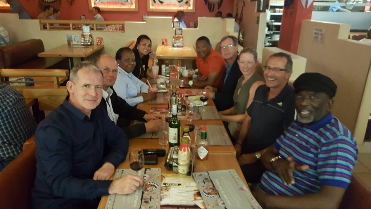 Early Friday morning Norm also flew away to speak at an event. Here he is having dinner with the parents of SA Gold medalist Wade van niekerk and SA Athletics officials.