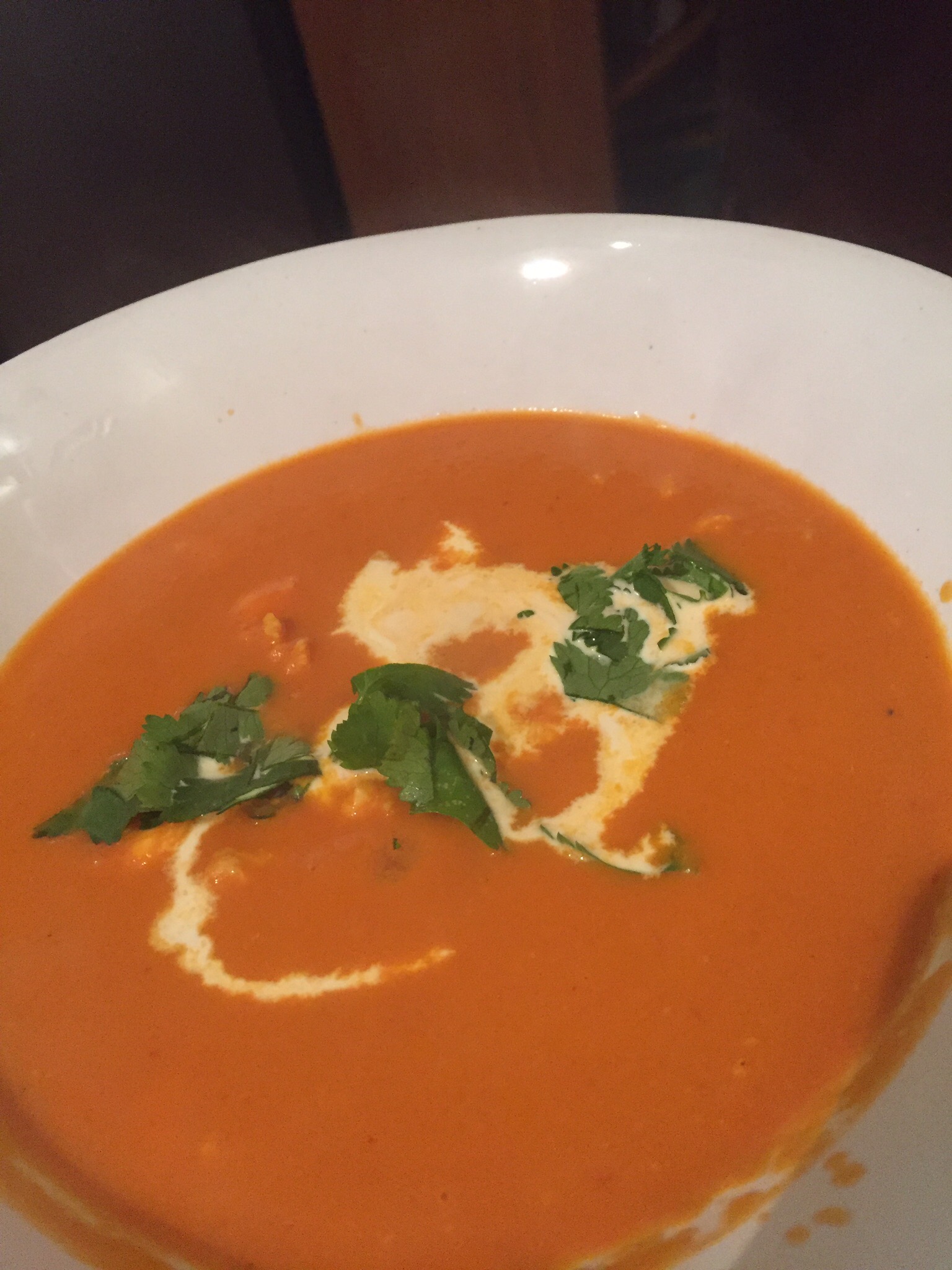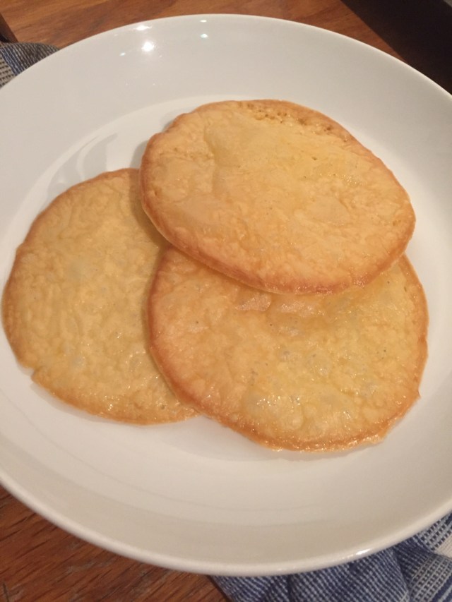 I topped the soup with fresh cream and chopped cilantro to serve. The provolone ‘crackers’ added a bit of crunch.