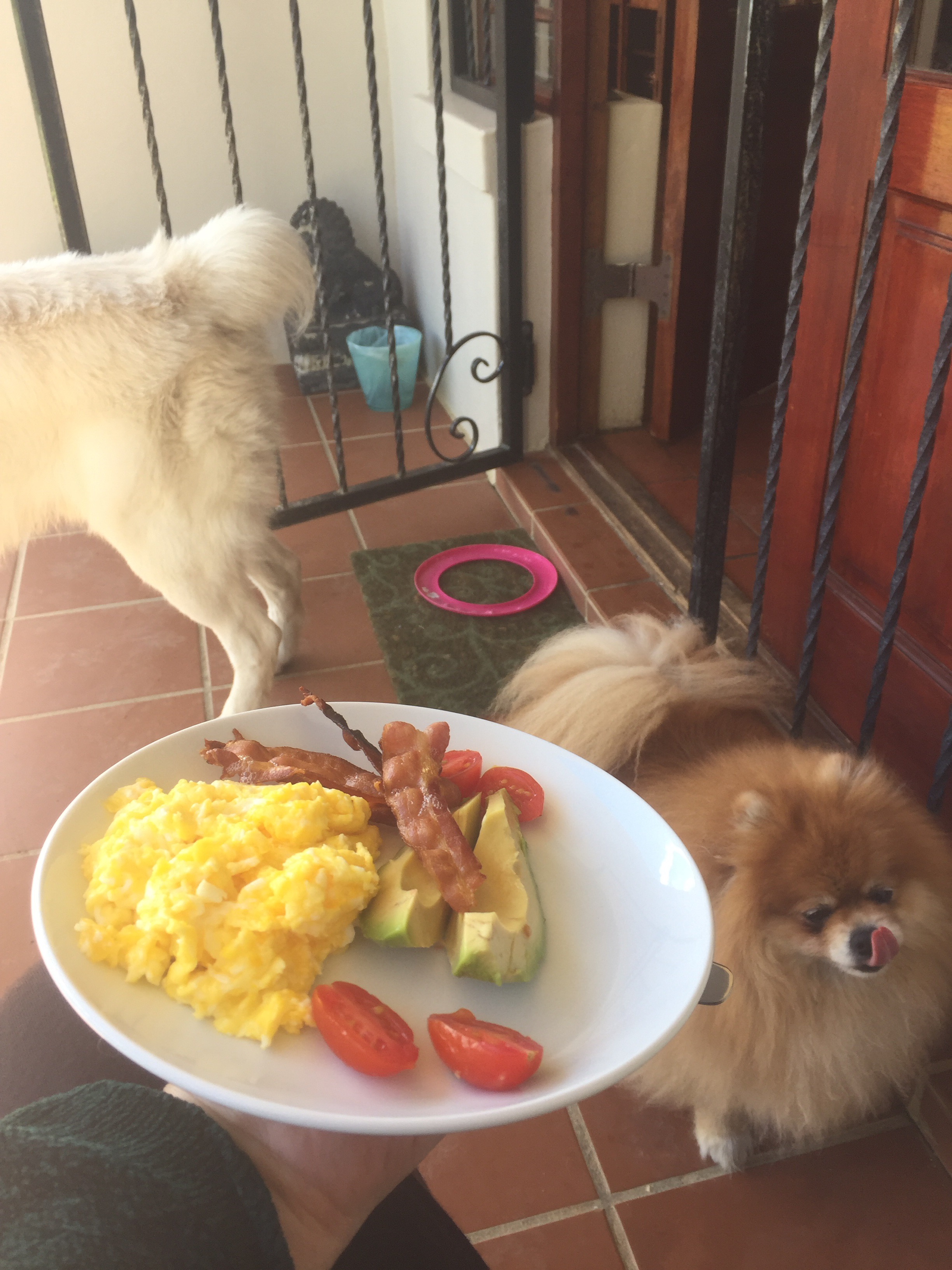Today has been working on dismantling the kitchen cupboards. Norm somehow managed to pull together a delicious Banting Brekkie. I was sitting outside and so surprised!