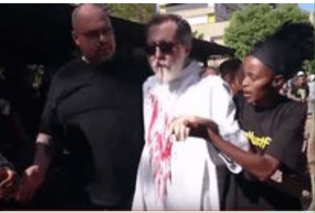 At Wits in the North of the country a priest named Father Graham Pugin from Holy Trinity Church in Braamfontein bravely stood at the church entrance blocking the police riot vehicle from entering the church grounds to arrest protestors who were seeking sanctuary.