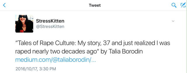 I woke the next morning to a barrage of assault. A series of 6 abusive tweets about the fact that the trans community had created the term rape culture and as cisgender I know nothing about rape culture etc etc.