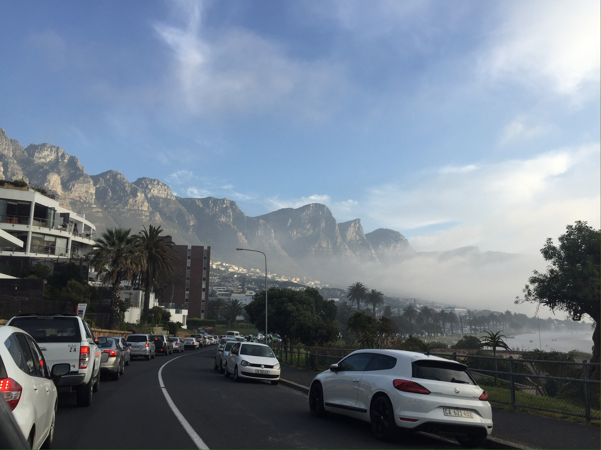Thursday afternoon I saw on Facebook that there was a two hour delay getting home due to traffic issues related to the building of a fancy block of flats in Bakoven. They had a stop go system operating during peak rush hour as one lane was closed while they dismantled a giant mofo of a crane. Rather than sit in my car I stayed at work til 6 before I ventured off, but still got stuck when I got to Camp’s Bay. At least it’s beautiful.