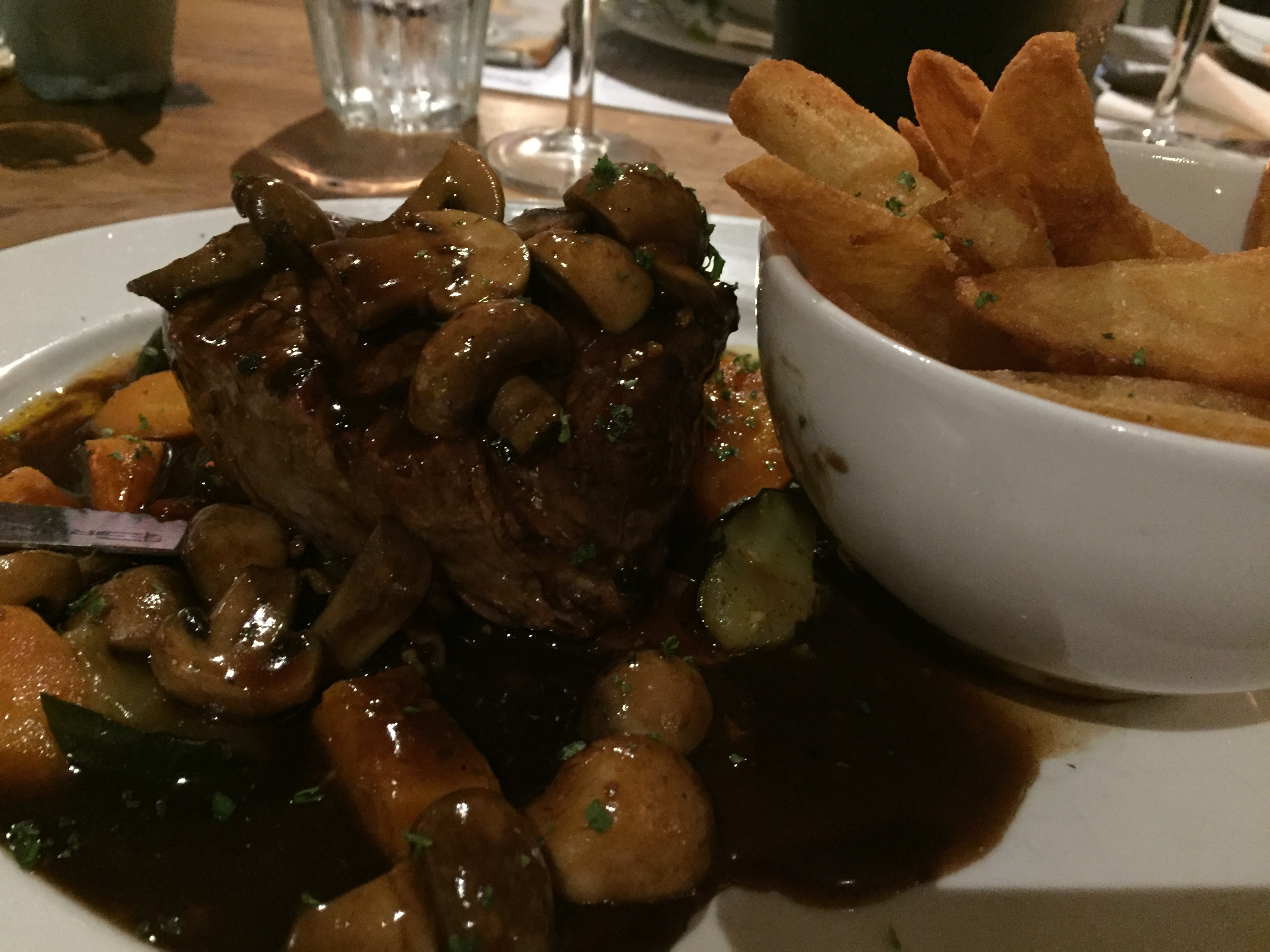 For my main I asked for my steak to be medium and pink but not bloody. It was so raw when it arrived it was still breathing. I sent it back but when it came back it was perfect and it tasted delicious.