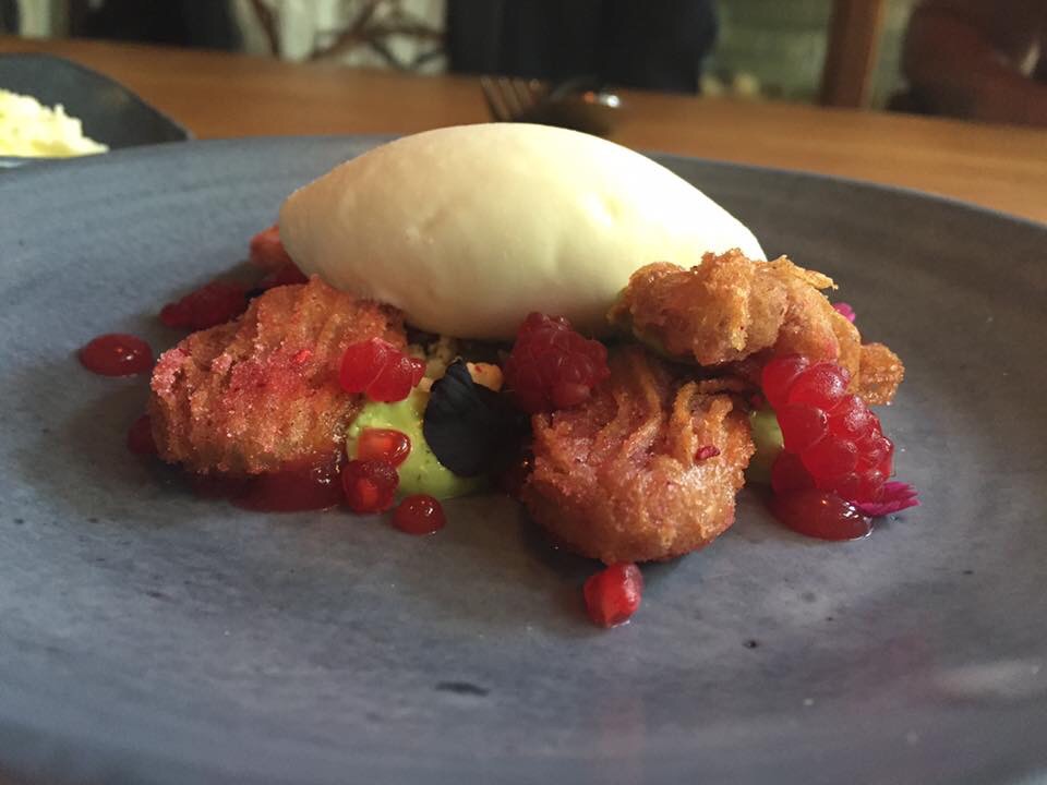 Raspberry Beignets for R65. Litchi milk ice, raspberries. These were better when I came previously.