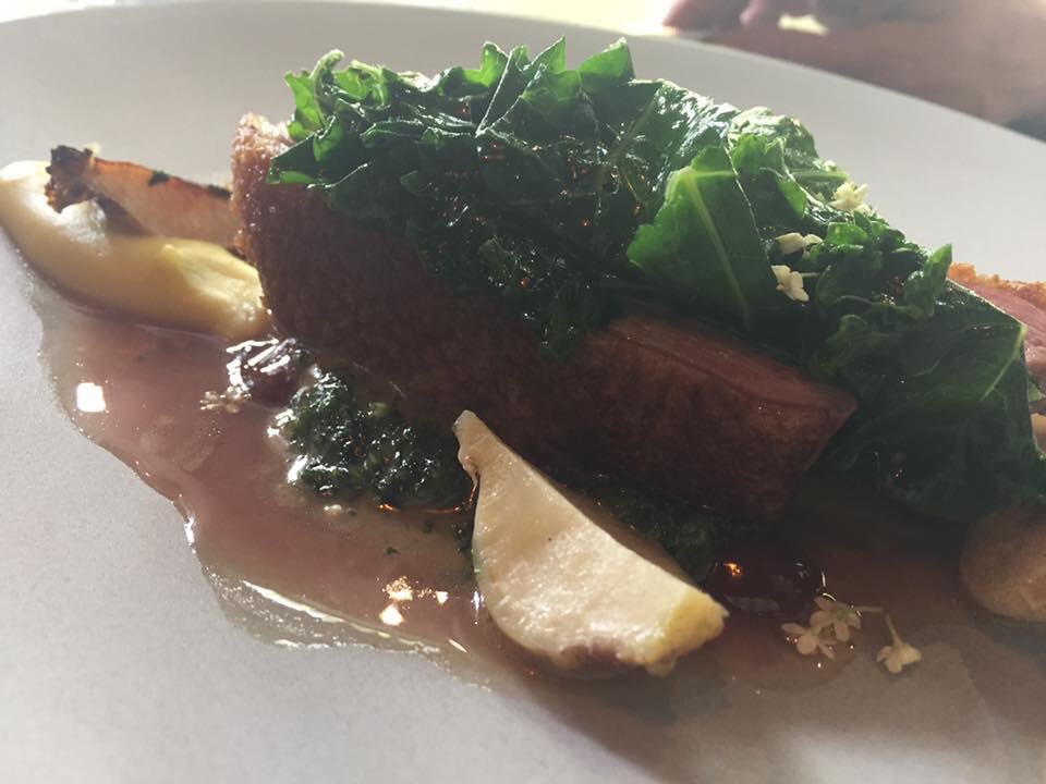 The Duck is a main on at R 190, it is a 7 Day Dry Aged Duck Breast with Turnips, fermented plum, gem squash, kale.