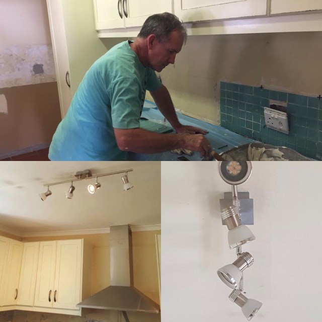 We installed new lights in the kitchen and the pantry. It’s so lovely and bright now. We also bought the tiles and Norm has done several sections.