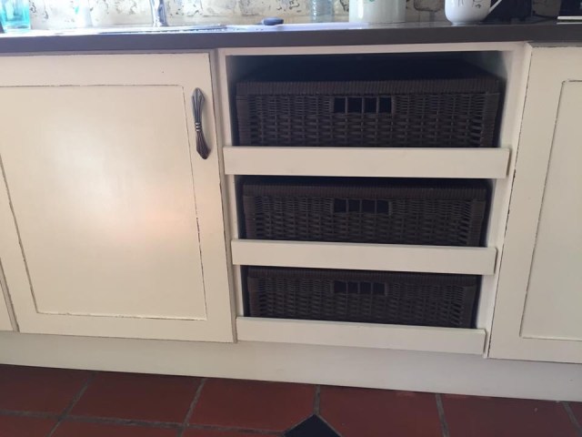 We carried on with the kitchen renovations through it all . My baskets were put in. I love them for storing veggies.