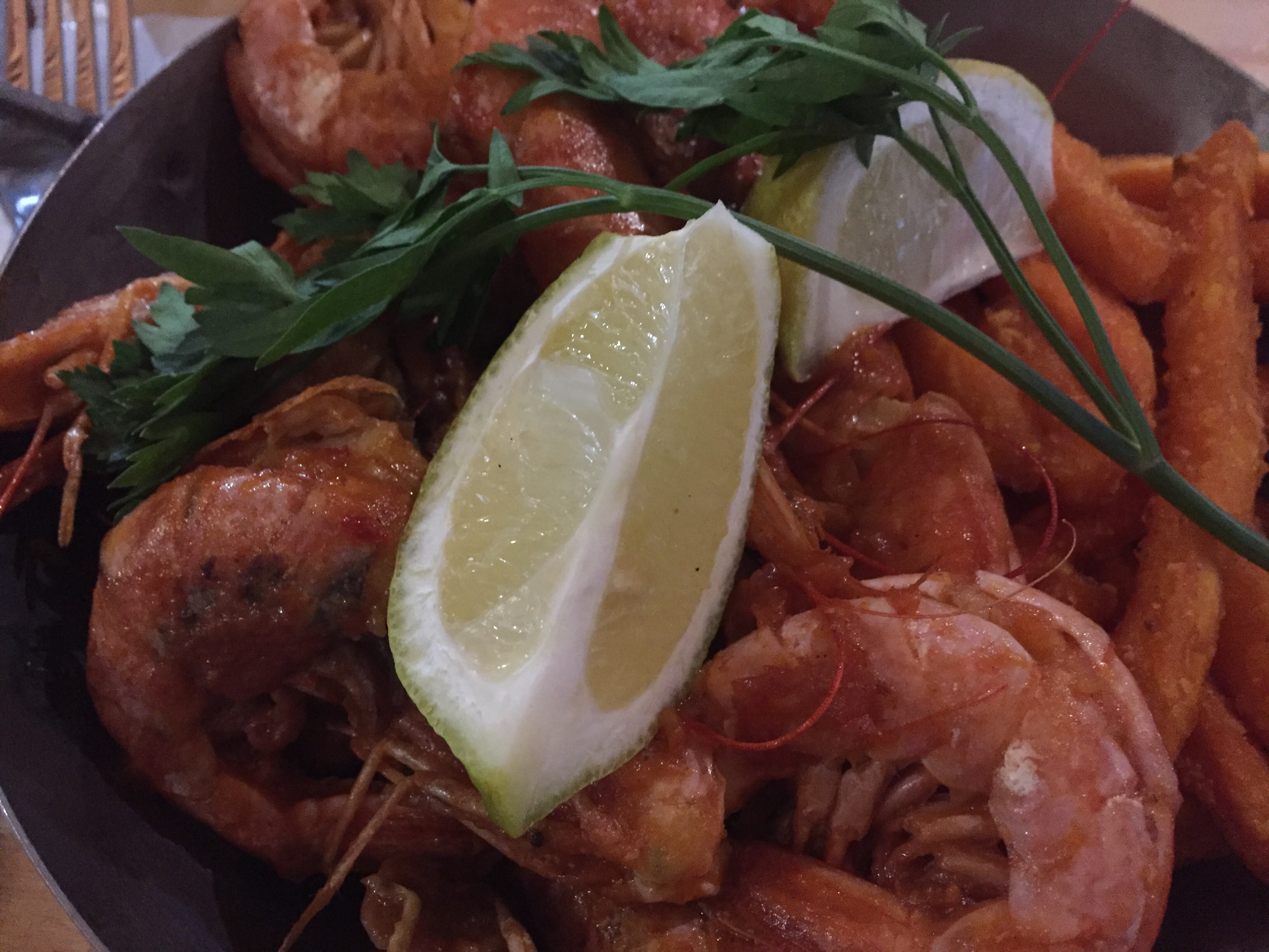 I had the peri-peri prawns. I also had the sweet potato fries but thought that they tasted frozen and not hand cut.
