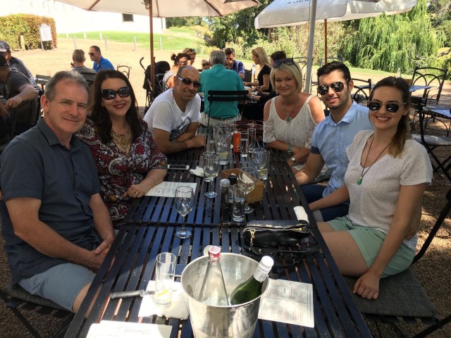 Sunday morning I had another long lie in bed. Caitlin rang around noon and invited us to join Wesley and her for lunch with his parents. We met them at Simon’s which is located in Groot Constantia, a stunning vineyard about 15 minutes up the road.