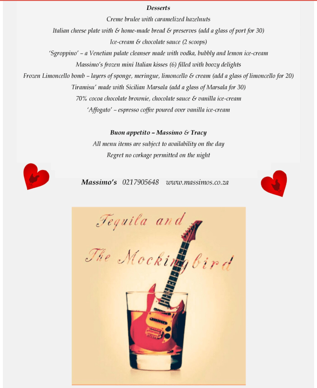 Speaking of food for lovers, (like how I did that segue?) all lovers of course know that last Tuesday was Valentines Day. We had booked to go to Massimo’s which is a local Hout Bay Italian restaurant which creates the best pizzas in the Bay (some might argue in all of Cape Town).