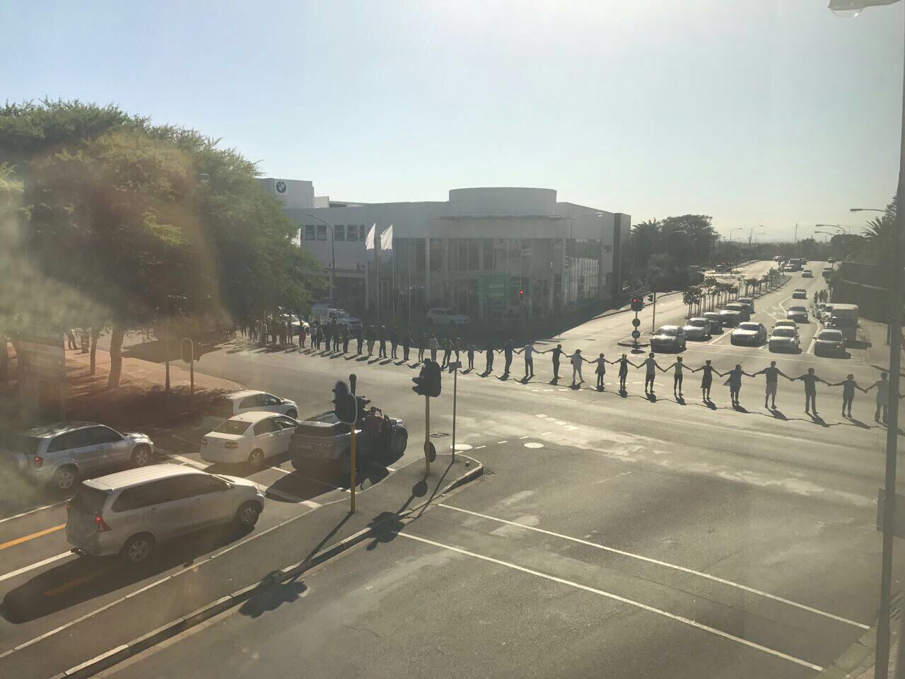 Norm and I went to Tokai to join the other people forming a human chain down Main Road, from the southern suburbs through to the city.