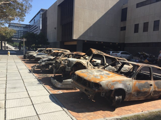 Friday Caitlin felt up to going into work and Norm was off to the physio and I was back in the office in the CBD. At least it was air conditioned. I walked over to Food Lovers Market at lunch time for sushi, it was too hot for cooked food, but the walk over made me feel faint it was so hot. They were removing the burned out cars by the Artscape which were left over from a film set and that diverted me for a bit.