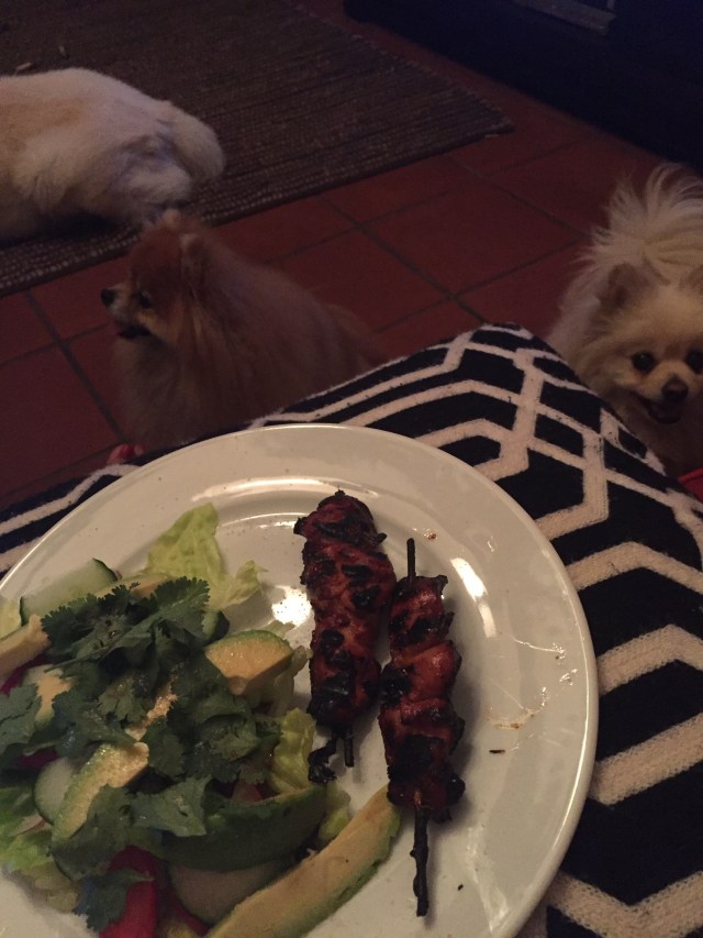 It was so hot all week so we barely cooked inside. Norm braaied chicken kebabs on Tuesday night and I made a salad. The dogs wanted some of my chicken. Nav turned his back on it all. I love his little rabbit like tail.