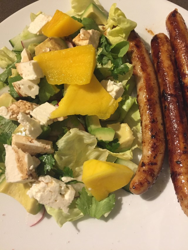 That night Caitlin felt up to a bit of organic chicken sausage so I cooked sausages and just made a salad for myself as that was too much roughage for Cait’s poorly tum.