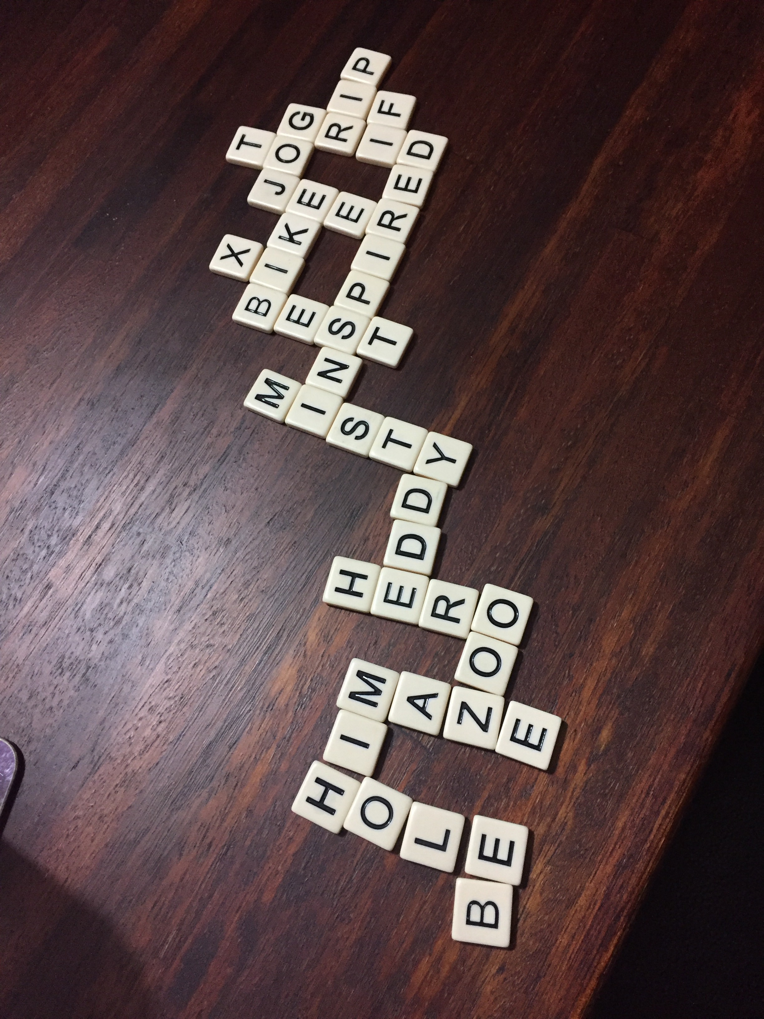 After we ate we decided to play games. We played Bananagram which was lots of fun. This was the tiles I had the round I won.