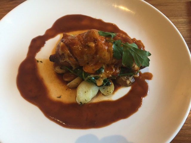 For our Main, we both decided to try the Hunters Chicken which was on the specials board. I had forgotten that Hunters Chicken comes with a sauce or I would have asked the chef to not include it. I asked for chips but they forgot so I had to wait a bit, it came with baby potatoes as pictured below. It was tasty but I found the sauce overwhelming.