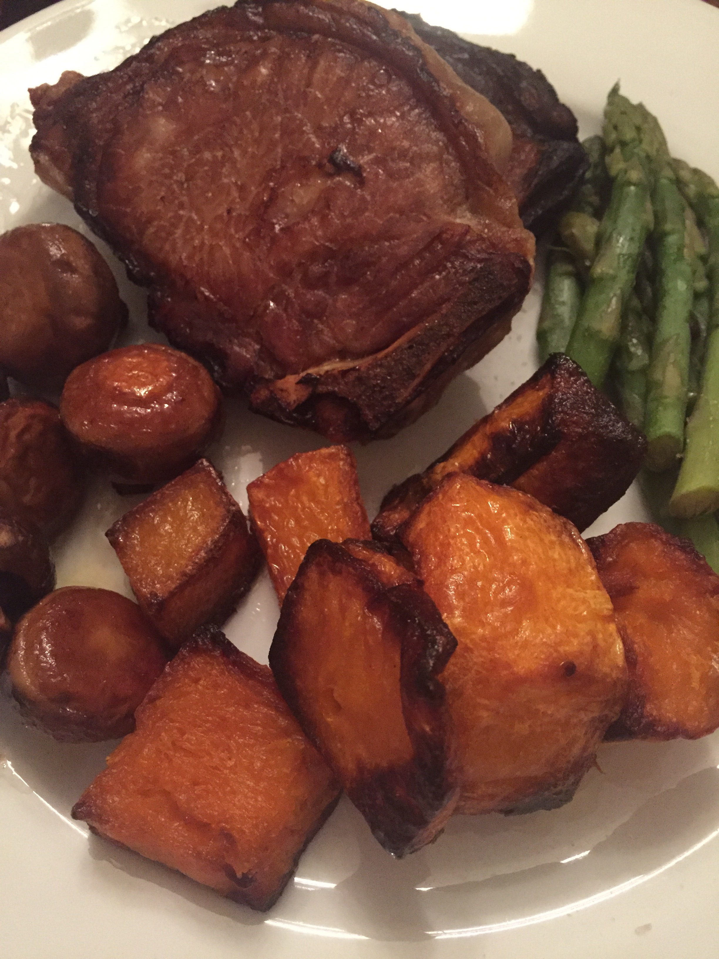 I kept it simple and just baked them with a bit of seasoning. I fried whole mushrooms in butter until brown, roasted butternut in coconut oil and steamed asparagus to go with it.