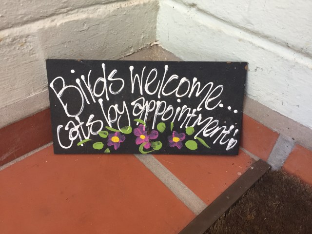 When Norm dropped me I went and knocked at the door. While waiting on the door to be opened I looked down and noticed the sign propped against the side of the porch.