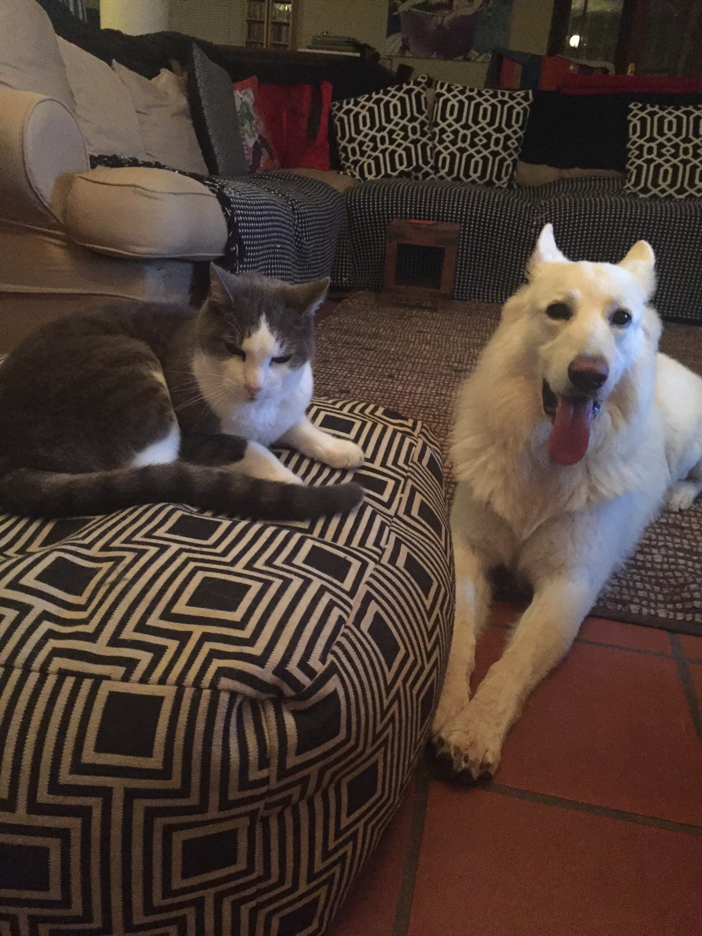 Even our pets were chilled out and pretending to be friends. Navajo looks happier than Blue with this camaraderie to be fair.