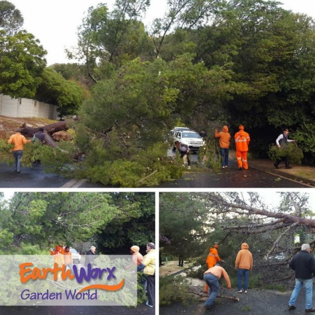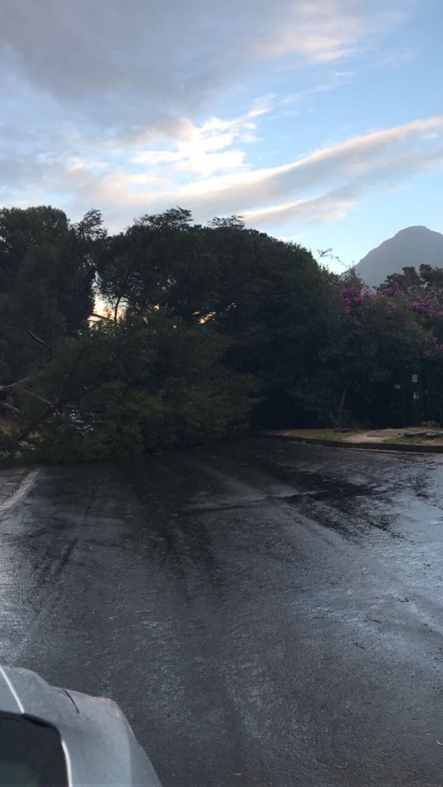 The damage we suffered was minor compared to many people. Norm had spent the day moving all of the garden furniture and garden ornaments into the flat at the back of our house so that they would not be airborne. Late morning Caitlin’s bedroom window started rattling and we realised that one of the panes was about to fall out and we had to call in an emergency repair guy which cost us R850 for 10 minutes work. That is only a temporary measure as they could not safely get onto a ladder to repair it and just secured it until the weather clears. We did not want to leave it though as the wind was howling into Caitlin’s room and it was really icy cold.