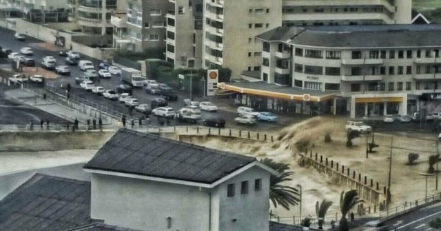 Three Anchor Bay slip way disappeared under foam & water. Everyone was advised to keep away from the Sea Point /Mouille Point Promenade. (photo credit from Jacques Weber JDW)