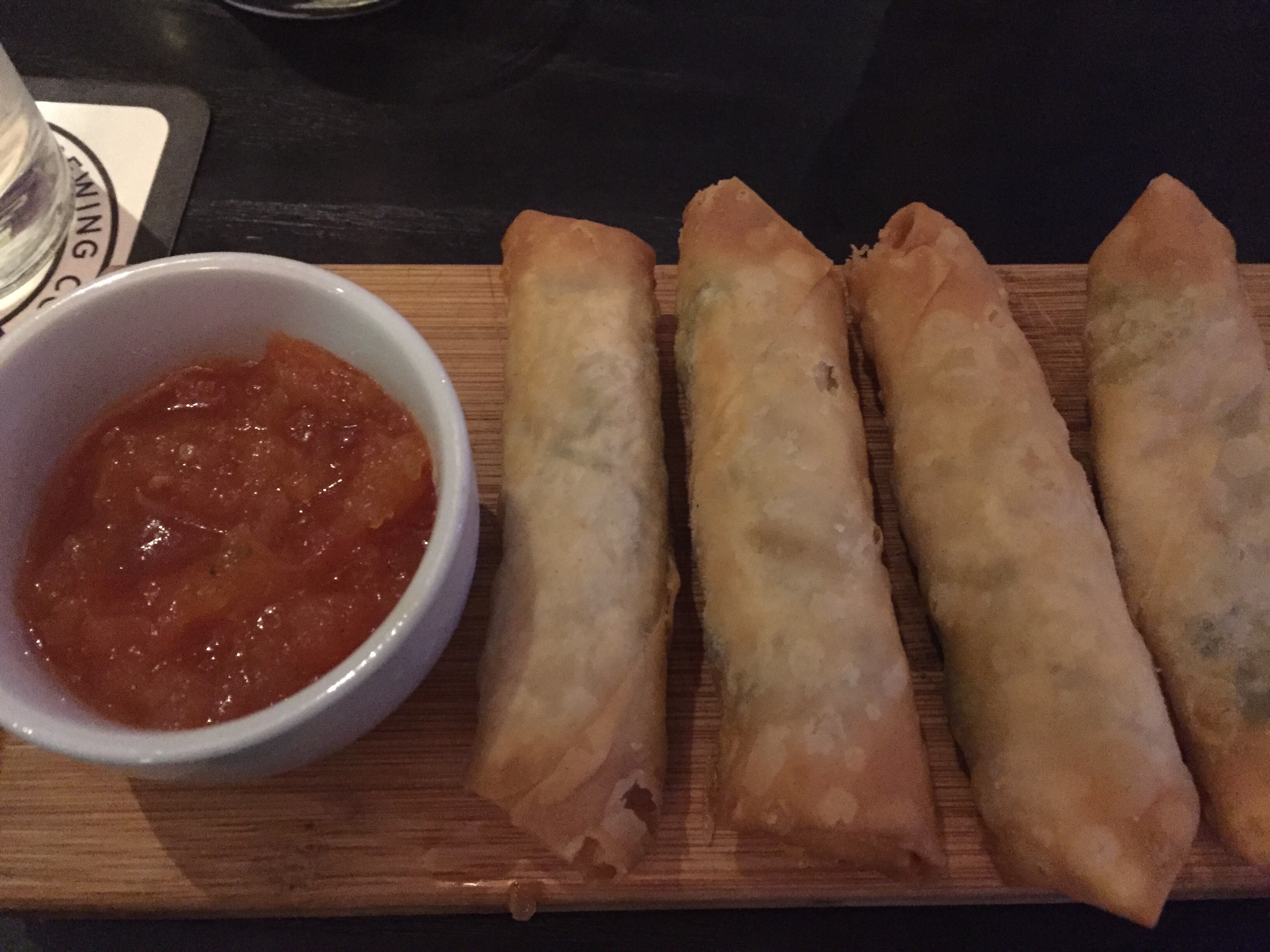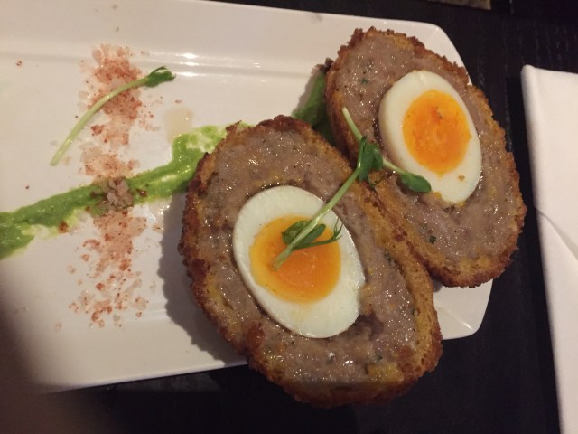 We got stuck into their yummy pub grub. Norm had his fave starter the Scotch Egg at R45. Caitlin and I shared the Jalapeno Cheddar Cigars at R44.