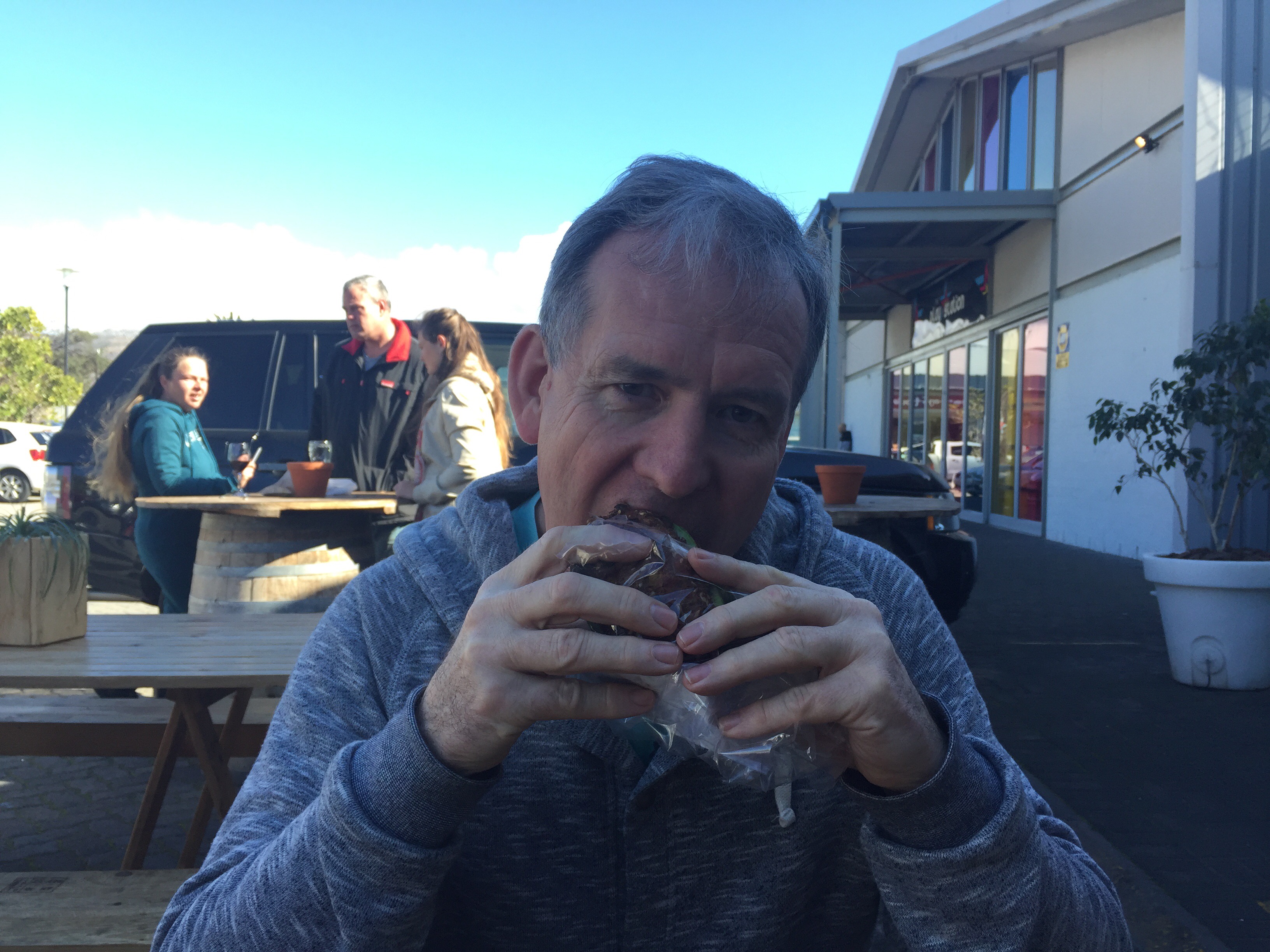 We grabbed a chicken sandwich, an Origin coffee and a table out in the sun.