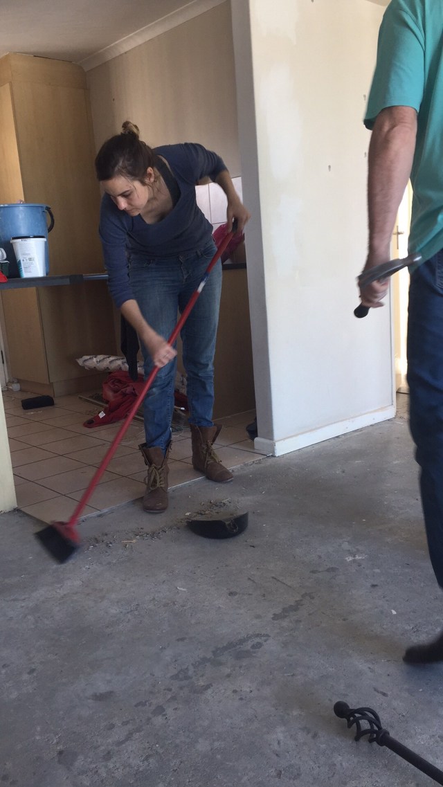 Saturday morning our gardener Mzudumo arrived early and said that he had not slept all night out of fear that his home would catch fire if they torched the area community leader who has a shack near him. The drought has meant our garden is barely growing and we cannot wash our cars so we asked him if he would mind going to Caitlin’s new flat and helping Cait with sanding the base boards which need to be repainted when she puts down her new floors. He is just happy for the work and it meant he was inside on that cold day rather than outside in the garden so he was agreeable with the change in routine.