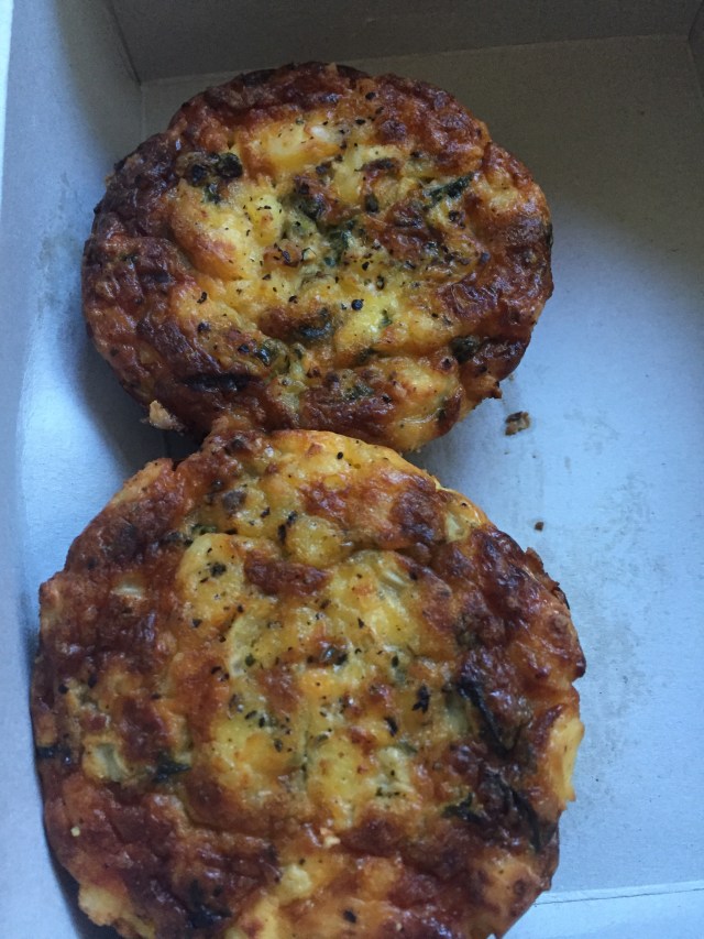 We decided to buy a couple of bite size quiches, a loaf of bread and some tiny carrot cake muffins to take home.