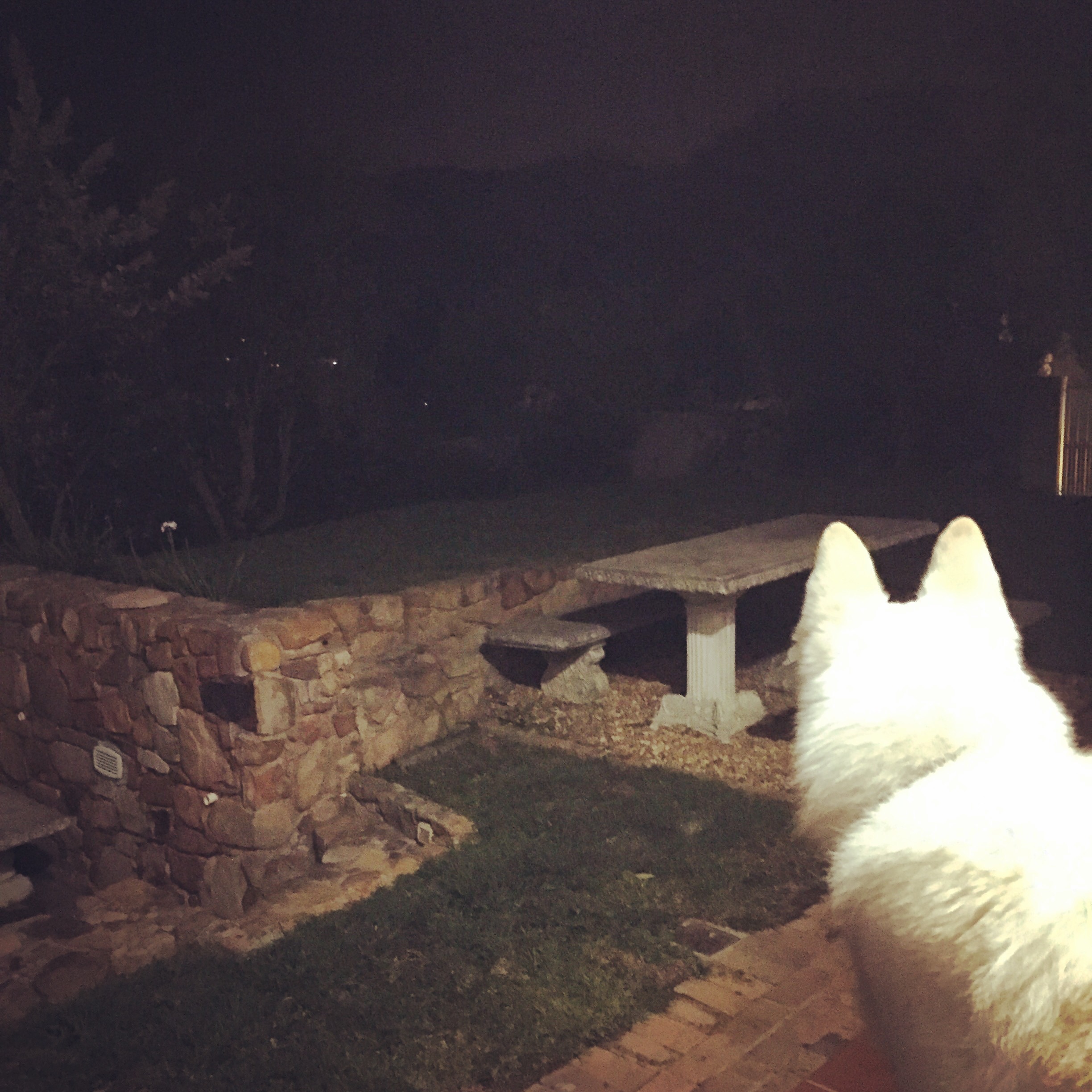 We had a turn in the weather at the end of the week and it was lovely outside on Friday night and it was our first night without a fire in ages, it was as warm as a summers evening so we sat outside for a bit. Navajo loves it outside in the evenings.